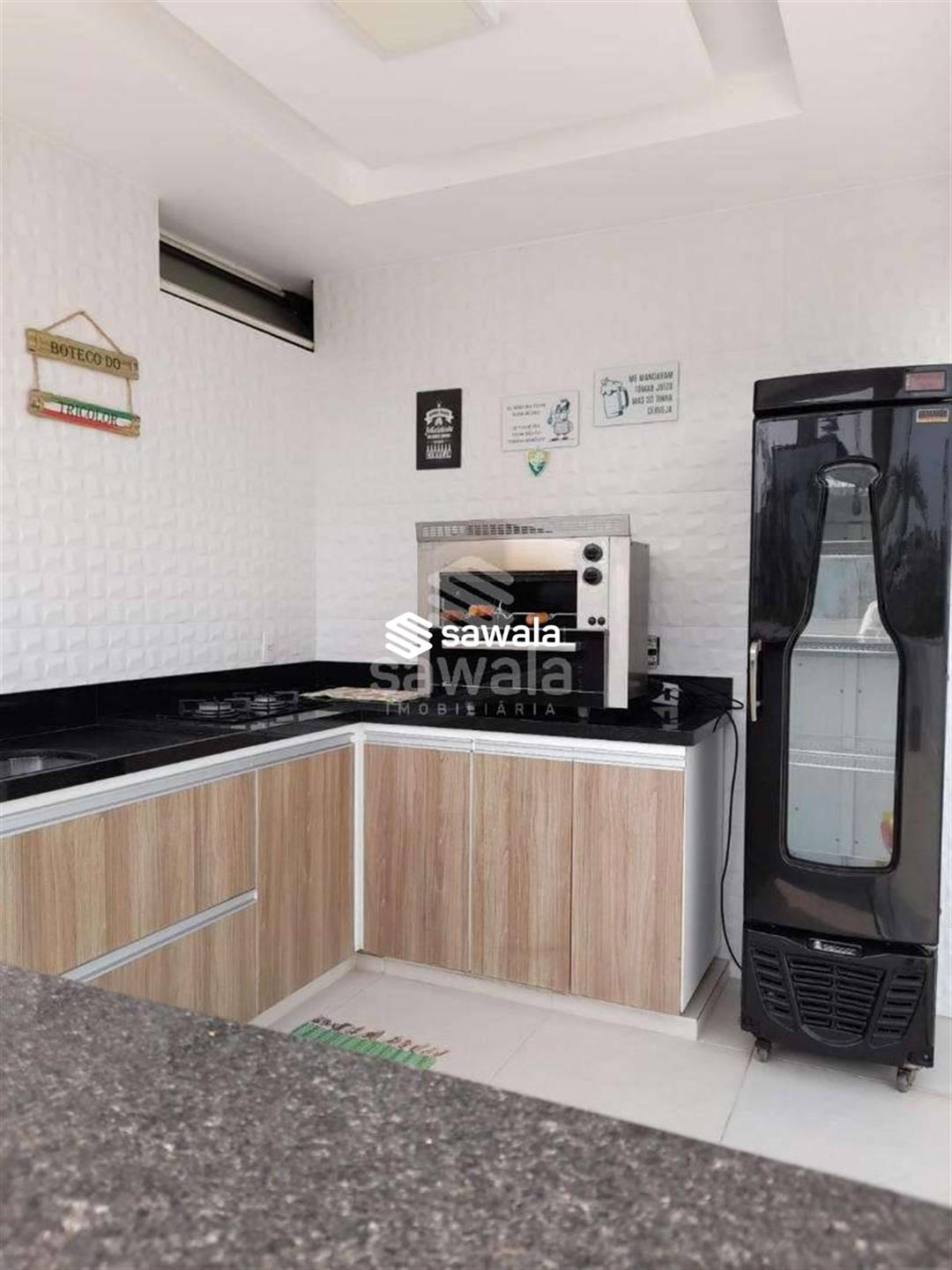 Ambiente gourmet com churrasqueira, fogão, pia de apoio, freezer, e linda vista inclusive praia.