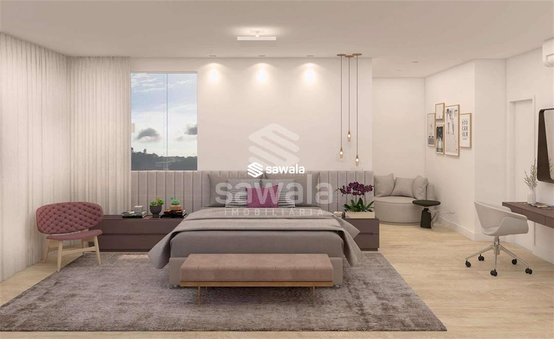 Paredes térmicas de bloco celular autoclavado em toda a construção.Imóvel localizado no ponto mais alto do condomínio, com bela vista para natureza.1º pavimento: 84,3m²; Amplo living com mais de 70m², pé direito alto (quase duplo) com frente envidraçada e vista para jardim; área de depósito e lavabo; na área externa, garagem com banheiro completo totalizando 32m².2º pavimento: 151m²; Sala de jantar e íntima com 55m²; cozinha com copa e despensa; área de serviço separada; quarto e ampla varanda com preparação para churrasqueira;3º pavimento: 151m²; 4 suítes, sendo 3 com closet e suíte master com 38,5m², hidromassagem e closet.