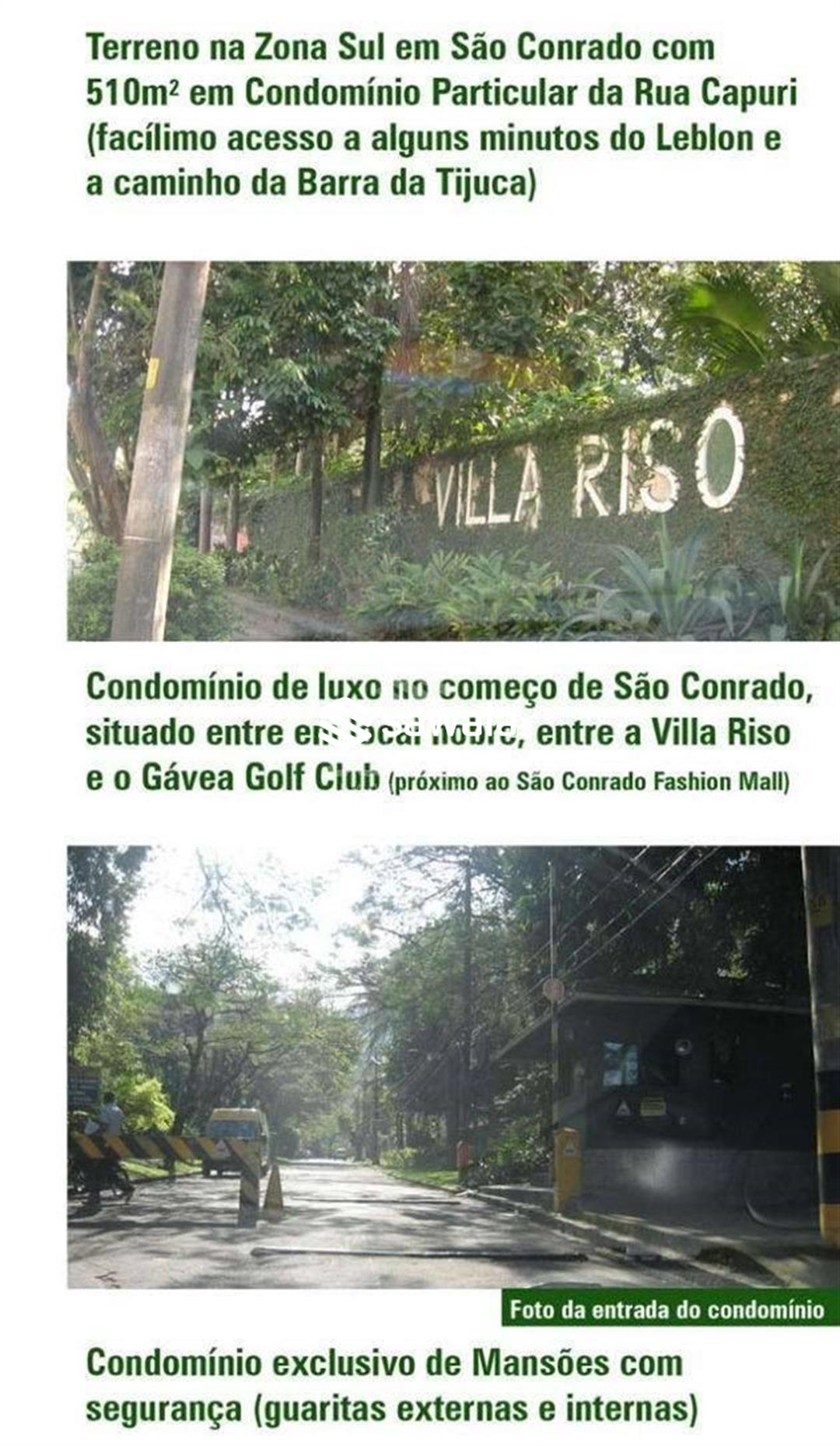 Situado na Rua Santa Gláfira em São Conrado no Condomínio da Rua Capuri, um condomínio bucólico de propriedades privilegiadas, com localização central - de facílimo acesso ao Leblon ou à Barra (entre a Villa Riso e o Gávea Golf)