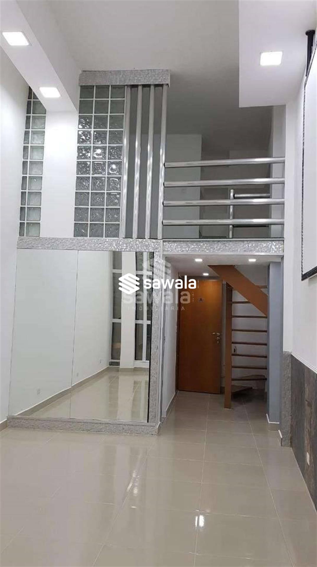 Excelente sala!Piso porcelanato, escada de madeira, jirau com armários, lavabo decorado, iluminação indireta.Ótima localização Ótimo para investidor ou para profissionais liberais.