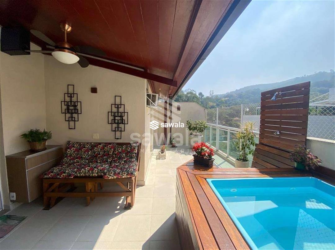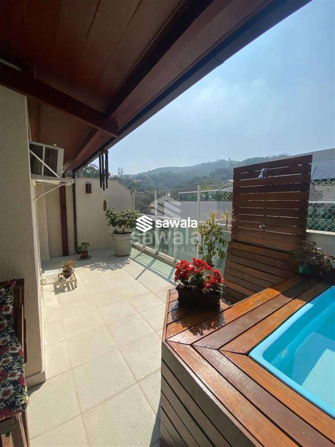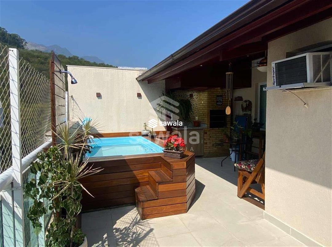 Bela cobertura duplex, muito bem conservada, sol da manhã, varandão vista lateral para as montanhas