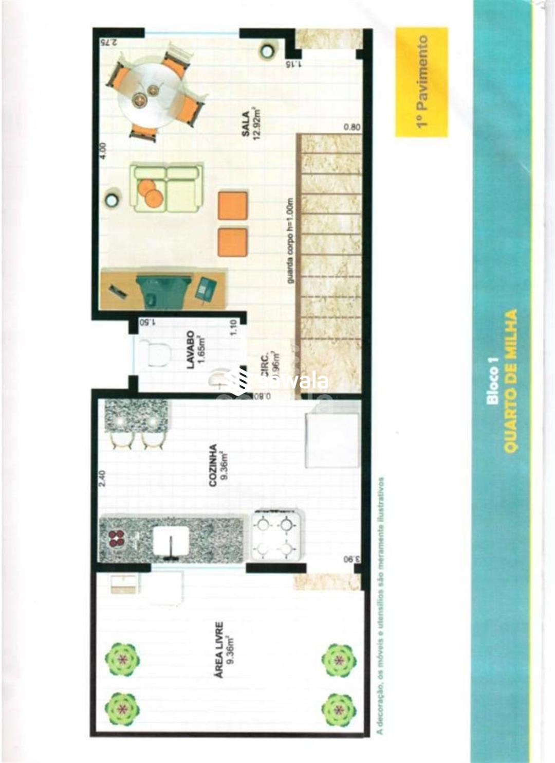 Primeiro pavimento: ampla sala, cozinha espaçosa com móveis planejados, lavabo e área externa