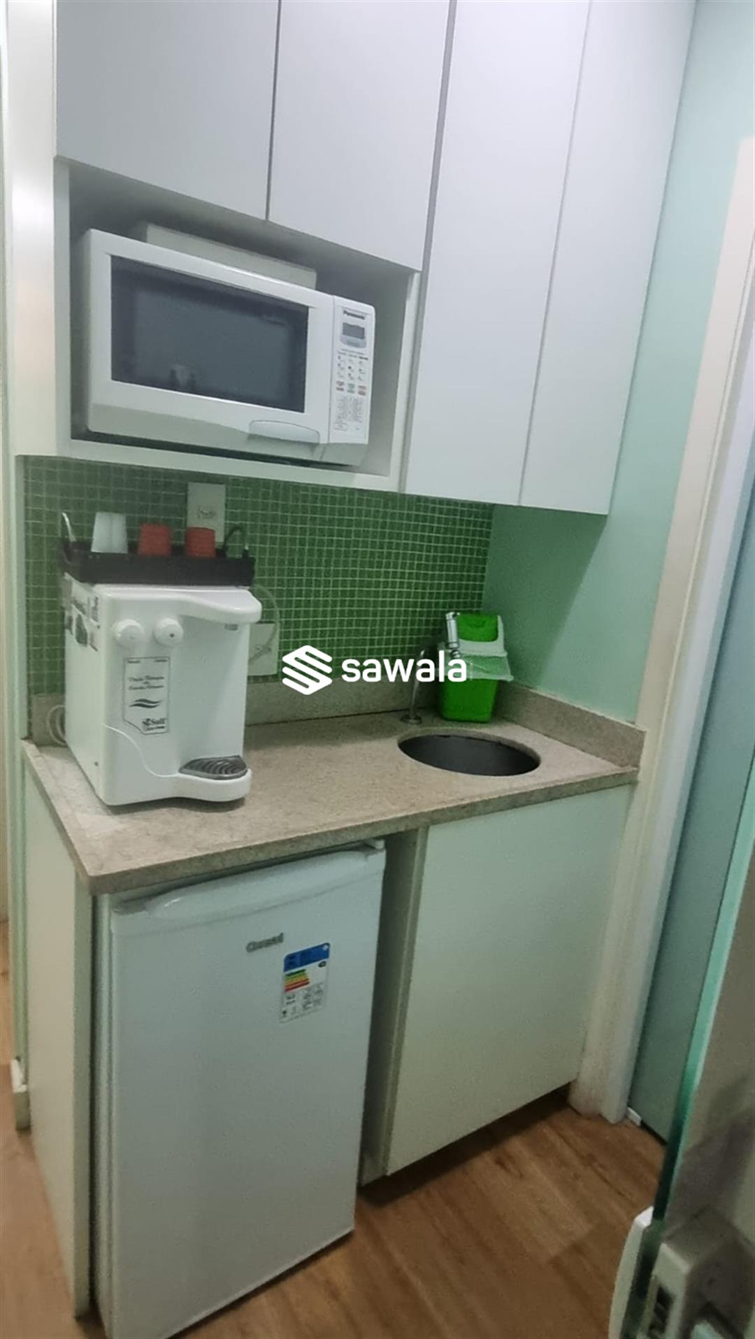 Para maior comodidade, o espaço conta com copa de apoio e um banheiro social, além de um lavabo.
