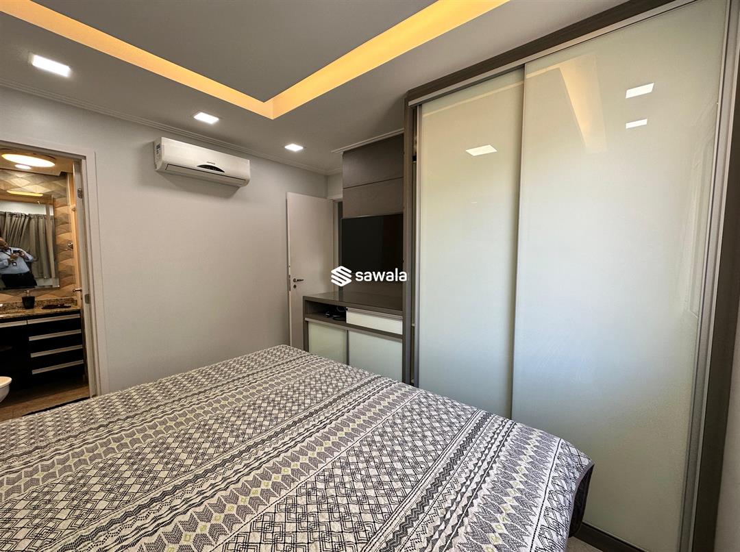 Apartamento 3 quartos - 1 suíte master e 2 canadense - 83m² - Condomínio Frames Residence Varanda gourmet com cortina de vidro, sala em dois ambientes, projeto de iluminação, banheiro social, 3 quartos todos com armários planejados, 1 suíte master, 2 suítes canadense, cozinha americana, área de serviço, piso porcelanato, ar condicionado split nos quartos e na sala