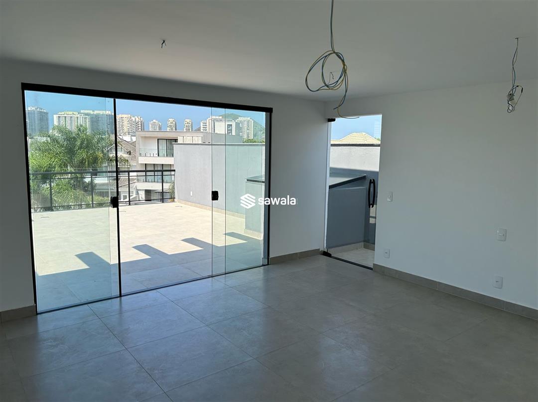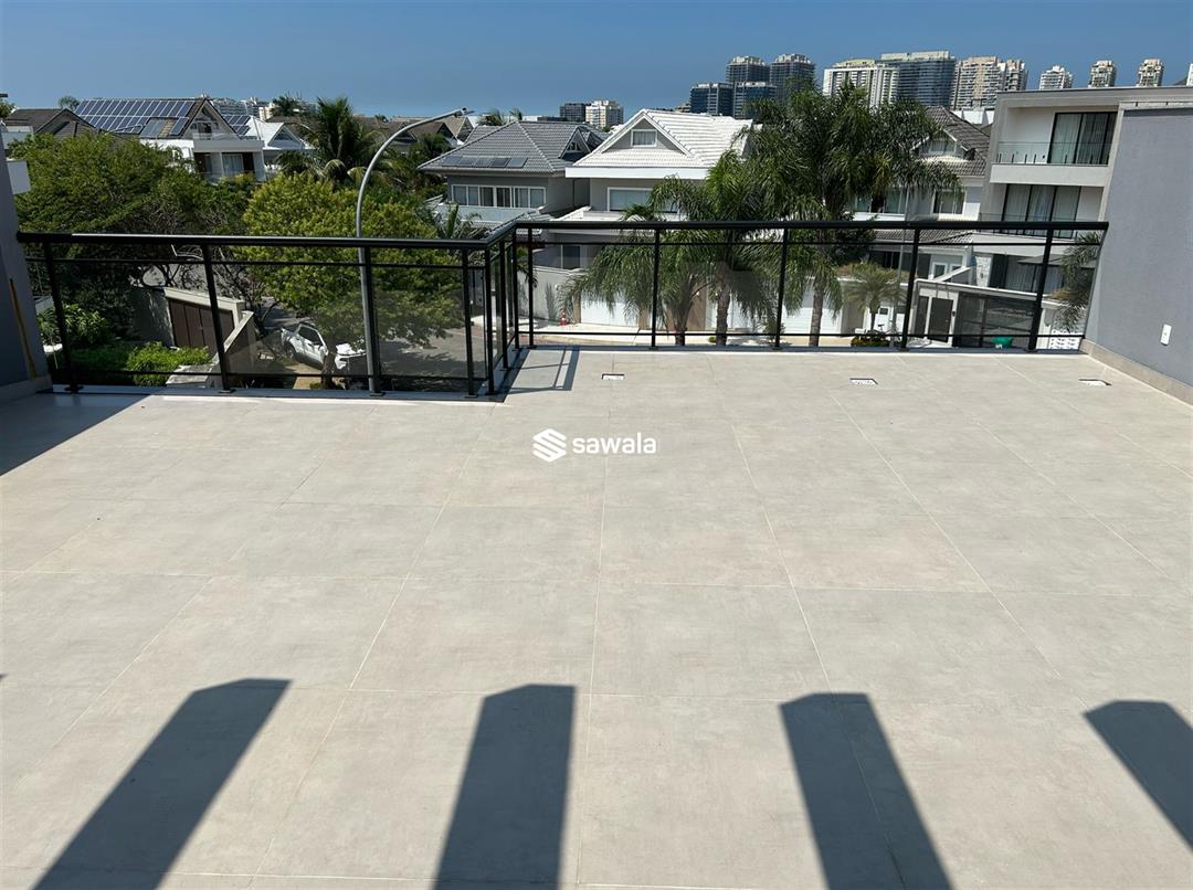 Entrada social. Garagem para 3 carros 2º Pavimento: Escada em granito, 3 suítes com varandas, banheiros com cubas sobrepostas e nichos, piso porcelanato, suíte master com closet. 3º Pavimento: Suíte, closet, banheiro com cuba sobreposta e nicho, amplo terraço com vista frontal para o condomínio. Portaria 24 h. Próximo: Supermercados, Comércio, Shoppings, BRT, Creches e Escolas.
