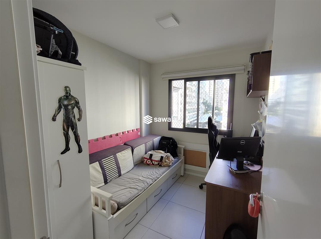 Com 88 m², o imóvel possui 3 quartos, sendo 1 suíte, sala em dois ambientes, varanda com fechamento em blindex