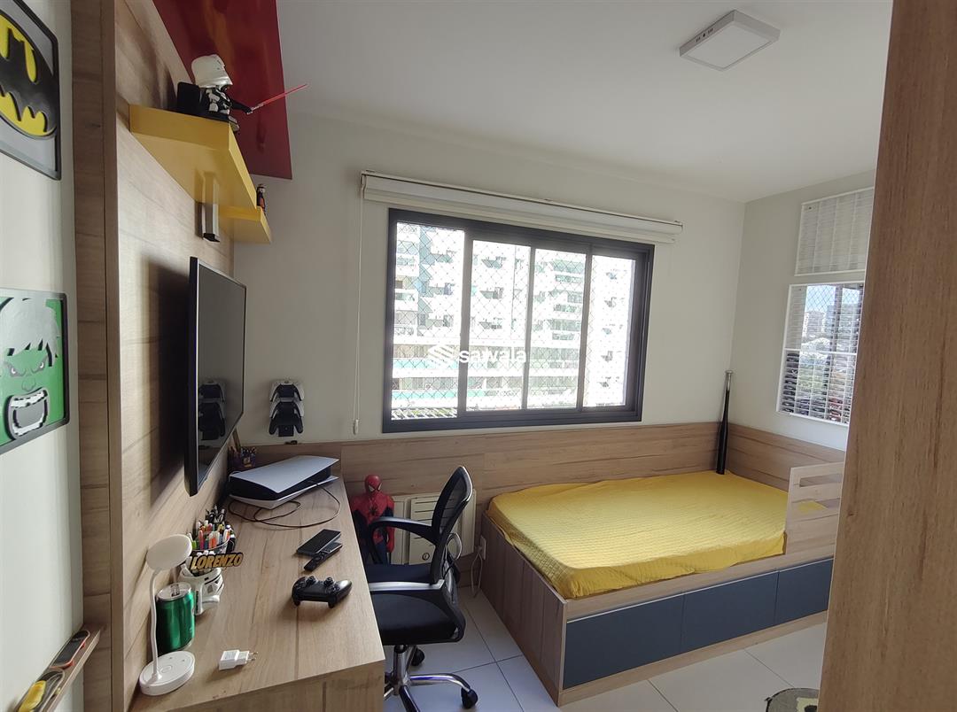 Conta ainda com cozinha equipada, área de serviço, armários planejados, ar-condicionado split e espelhos