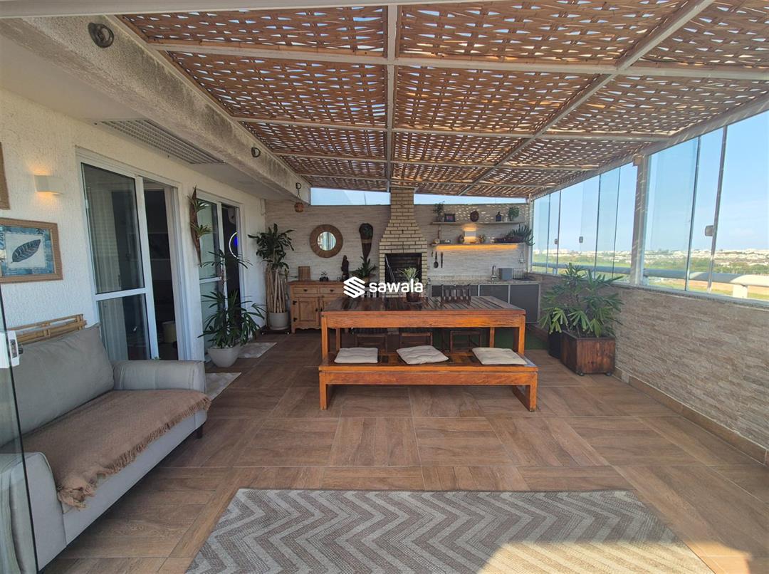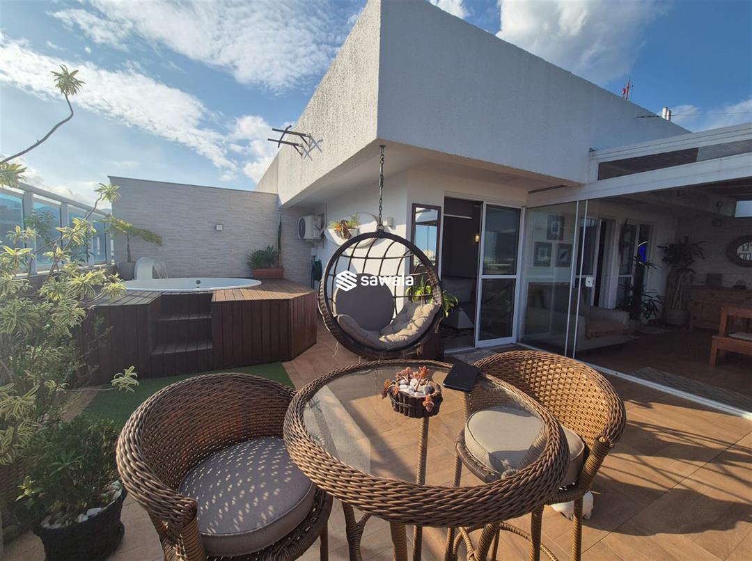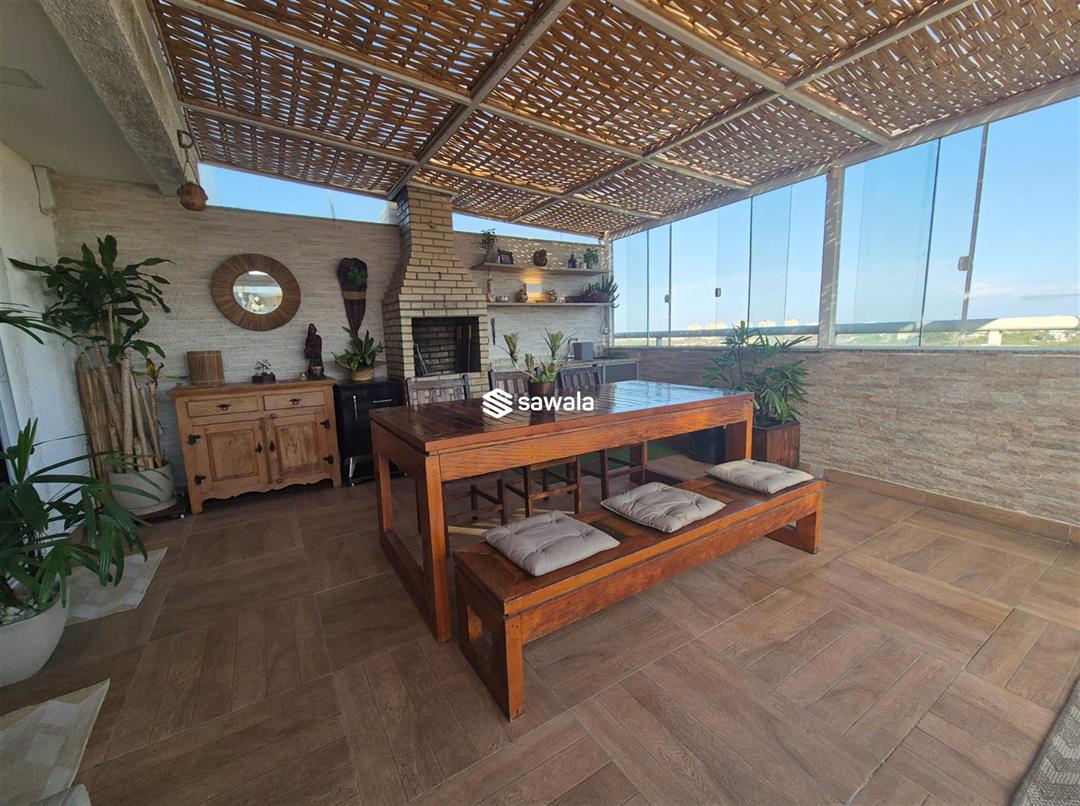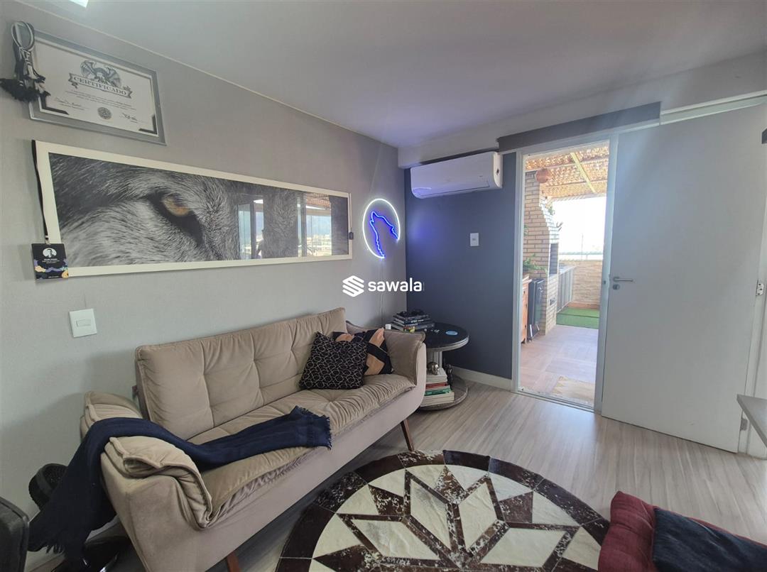 Situada no 8º andar, esta cobertura oferece o melhor em conforto e estilo de vida. No andar inferior, você encontrará 3 quartos, incluindo uma suíte elegante, uma sala dividida em 2 ambientes acolhedores, uma varanda convidativa, um lavabo, um banheiro social e uma cozinha americana equipada com armários planejados. O andar superior reserva uma sala de TV aconchegante, um quarto adicional, um banheiro completo e uma área externa espetacular