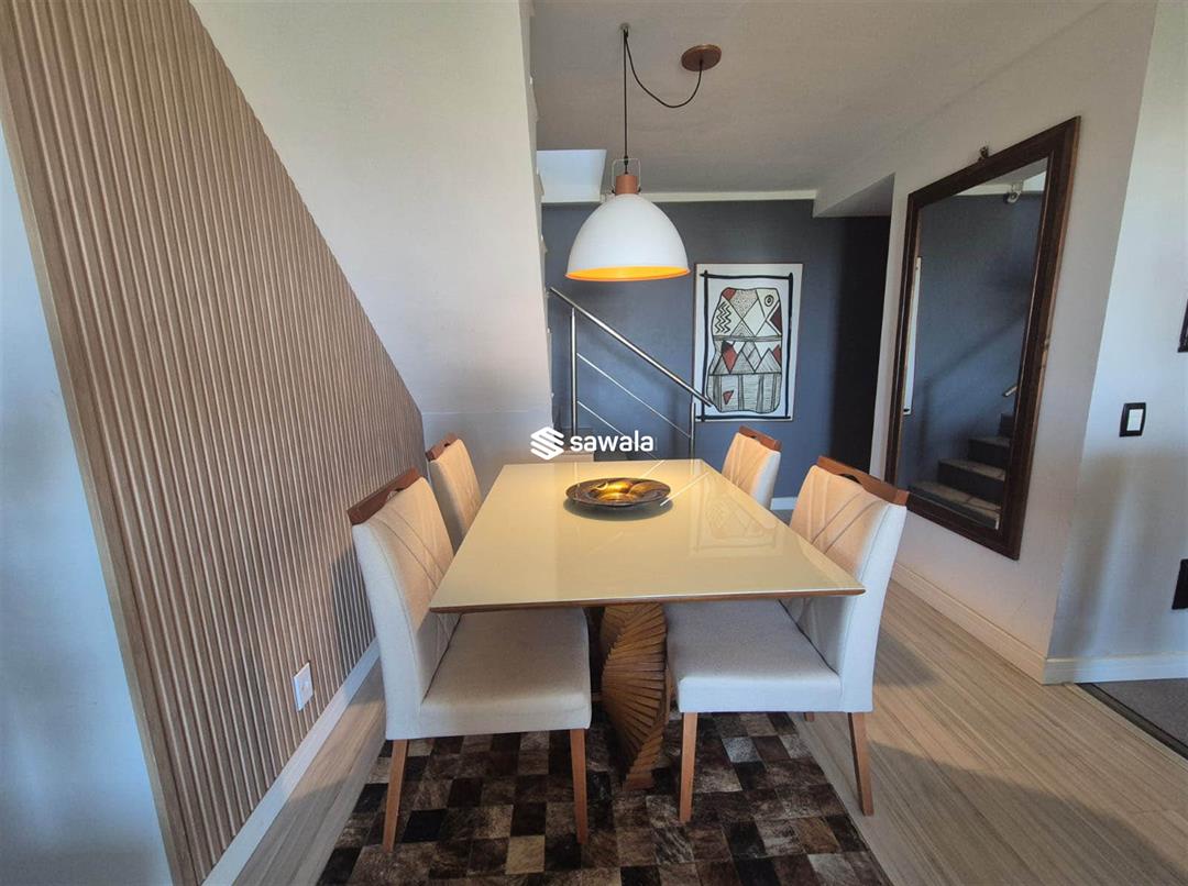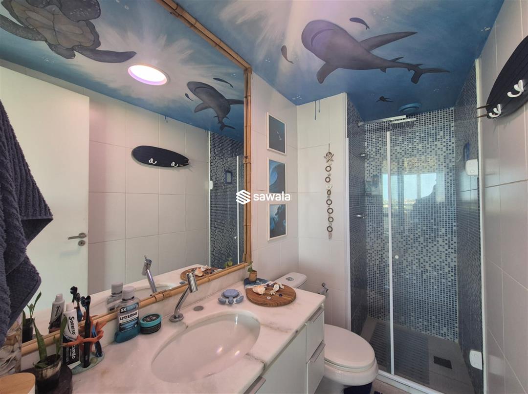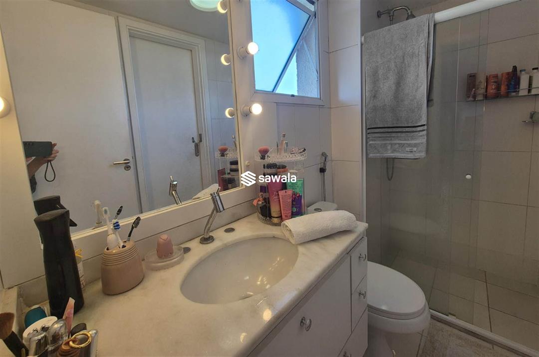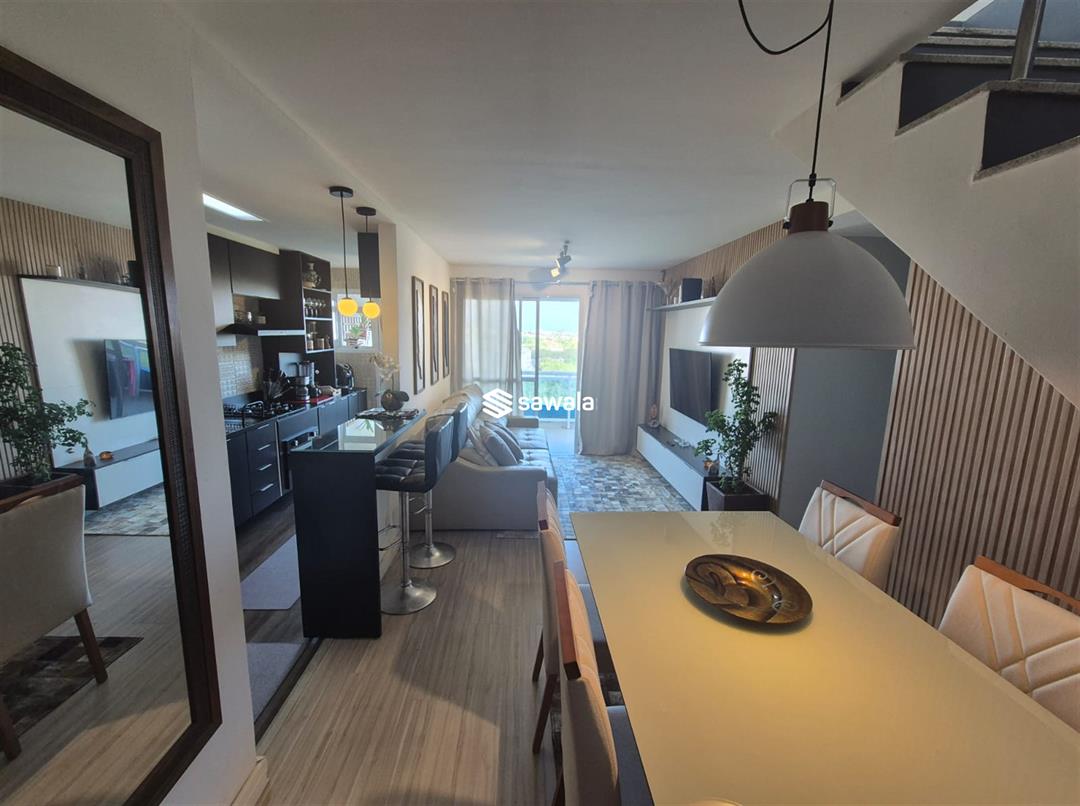 Situada no 8º andar, esta cobertura oferece o melhor em conforto e estilo de vida. No andar inferior, você encontrará 3 quartos, incluindo uma suíte elegante, uma sala dividida em 2 ambientes acolhedores, uma varanda convidativa, um lavabo, um banheiro social e uma cozinha americana equipada com armários planejados. O andar superior reserva uma sala de TV aconchegante, um quarto adicional, um banheiro completo e uma área externa espetacular