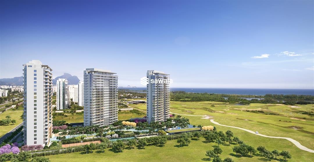 Apartamento à venda no Atlântico Golf com vista espetacular: mar, a Lagoa de Marapendi e o Campo de Golfe Olímpico emolduram seu horizonte.Sendo 4 suites, lavabo, cozinha, área de serviço, depedendência completa