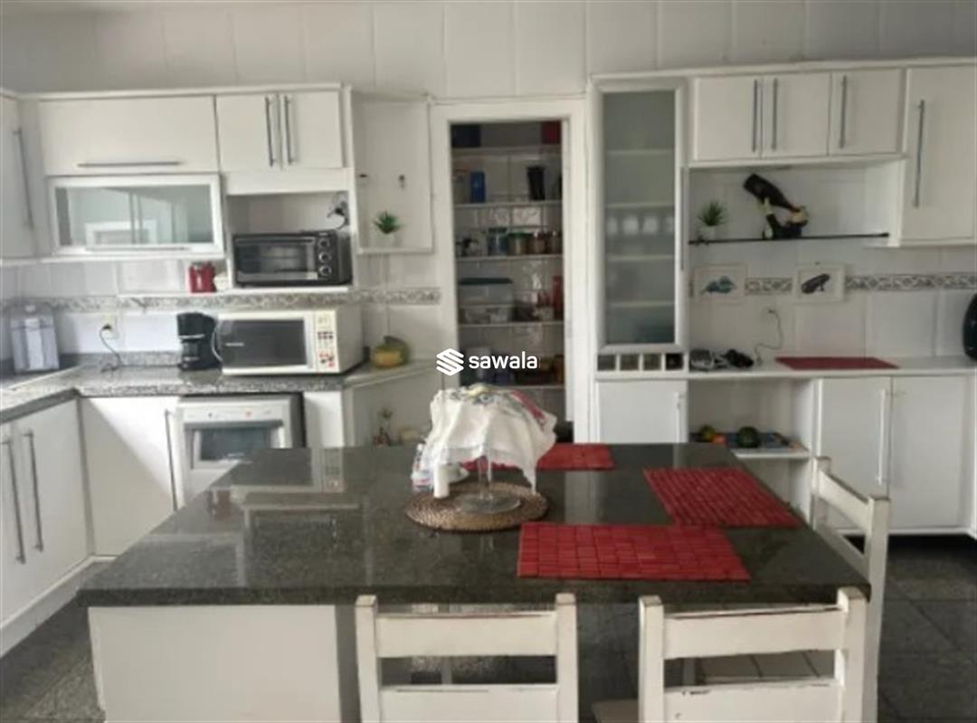 São 610 m² de terreno com 425 m² construídos divididos em salão, 5 amplas suítes, lavabo, cozinha planejada com copa, lavanderia e dependência completa