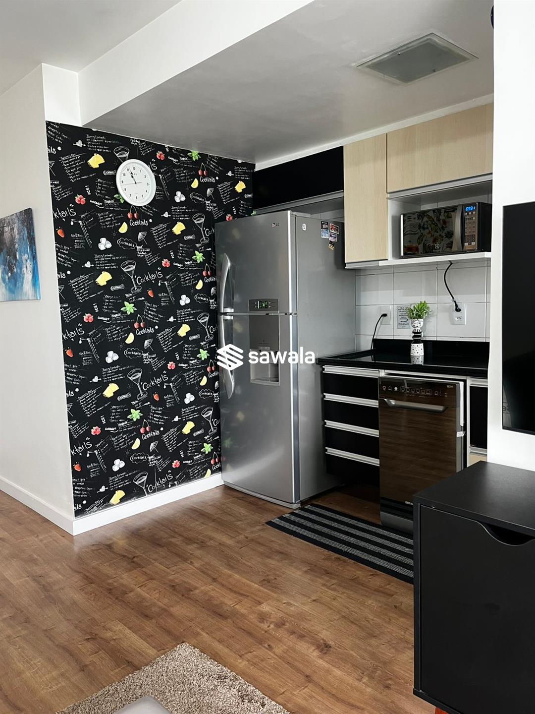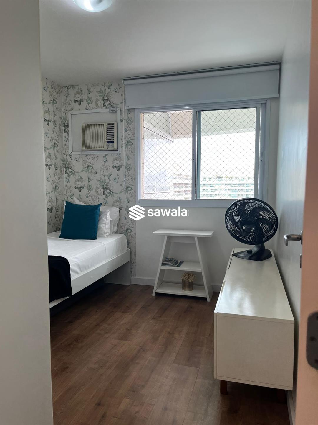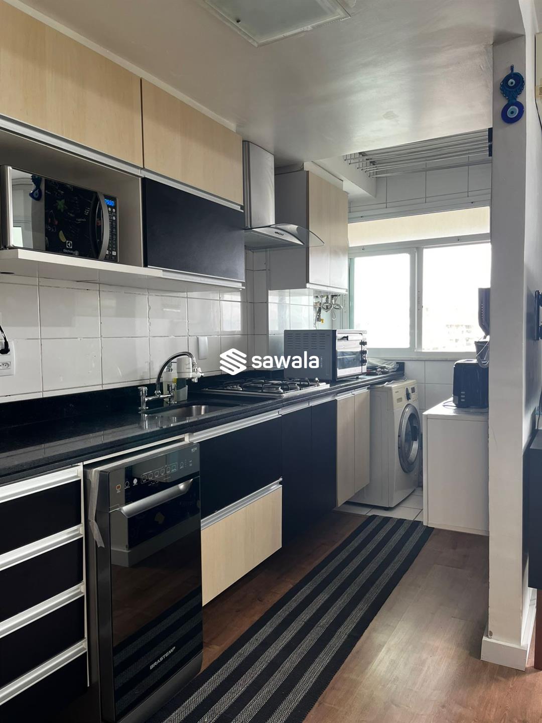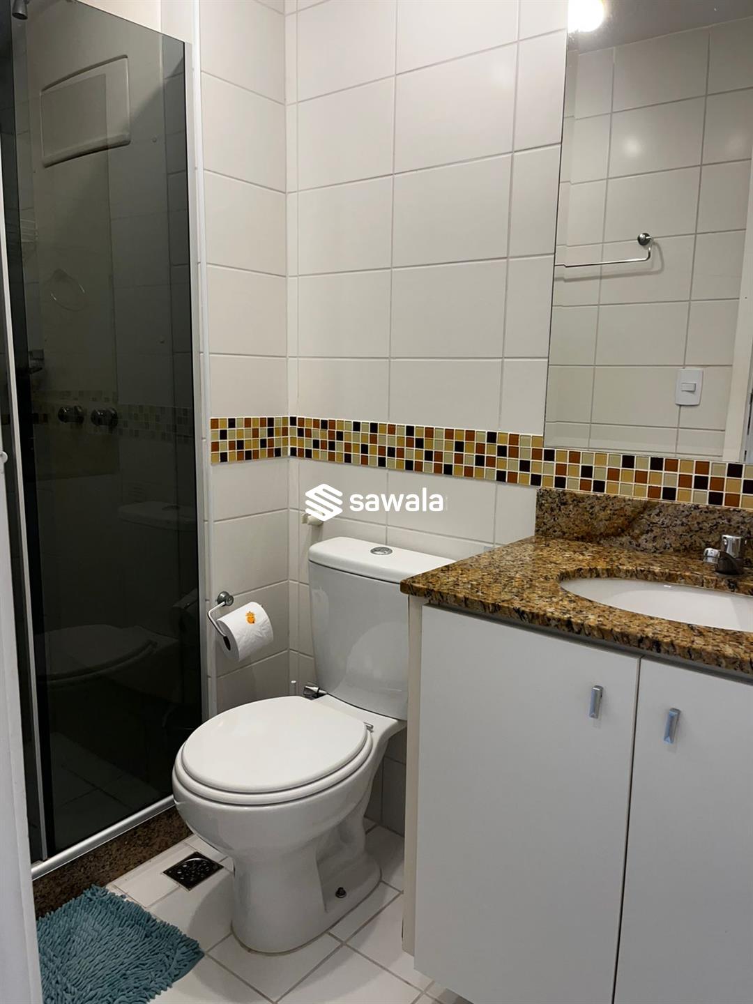 Apartamento mobiliado.Sala ampla c/ ar tipo split com TV, sofá, mesa com 4 cadeiras, varanda com cortina de vidro, cortina interna automática e conjunto de estofado, cozinha integrada a sala , com geladeira, lava -louça, lavadora lava e seca, fogão, armários em cima e embaixo da pia, aquecedor digital