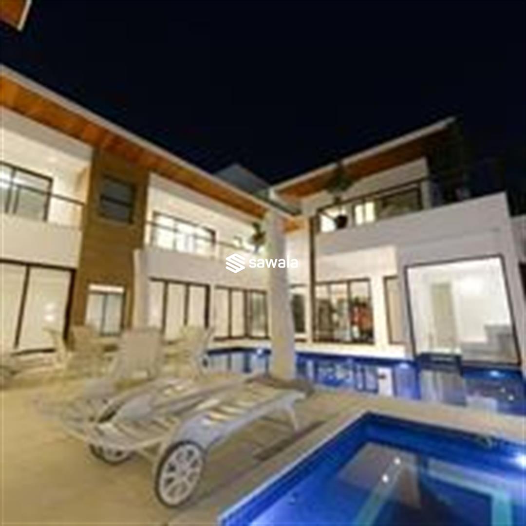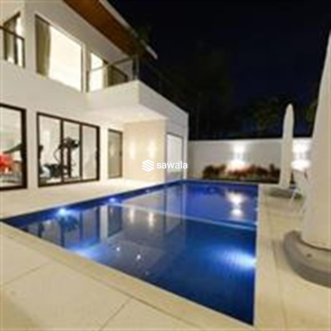 Piscina com deck molhado e spa