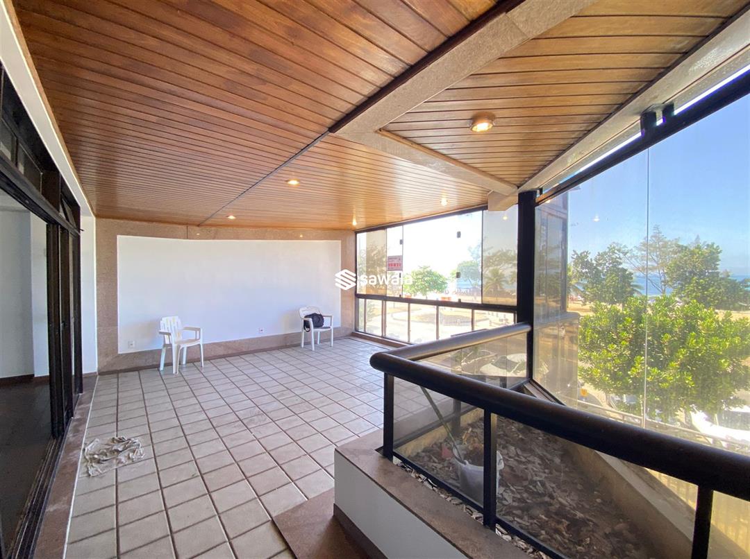 A ampla sala, integrada a um varandão com cortina de vidro, oferece um espaço ideal para receber e relaxar, com a vista do mar como pano de fundo.O apartamento conta ainda com um lavabo, dependências completas e duas vagas de garagem escrituradas, garantindo total comodidade
