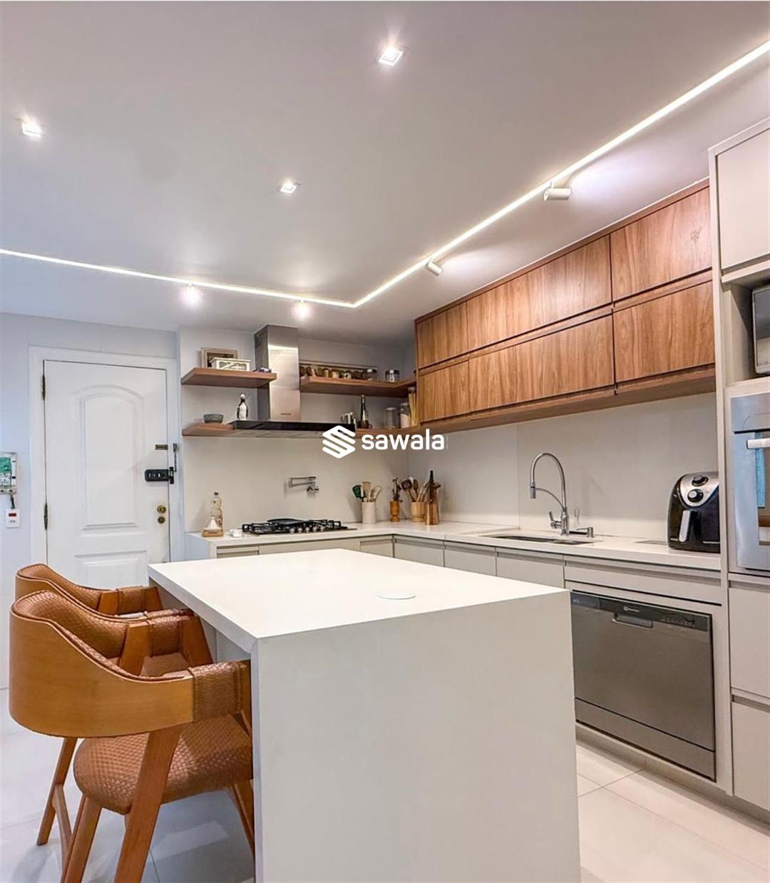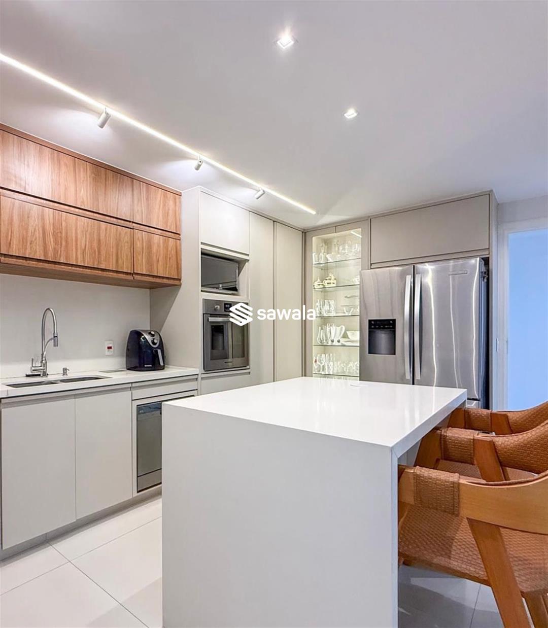 A cozinha é espaçosa e planejada, com copa integrada e excelente área de serviço, incluindo dependências completas.O imóvel conta com 1 banheiro social e 1 banheiro de serviço, além de 4 vagas de garagem
