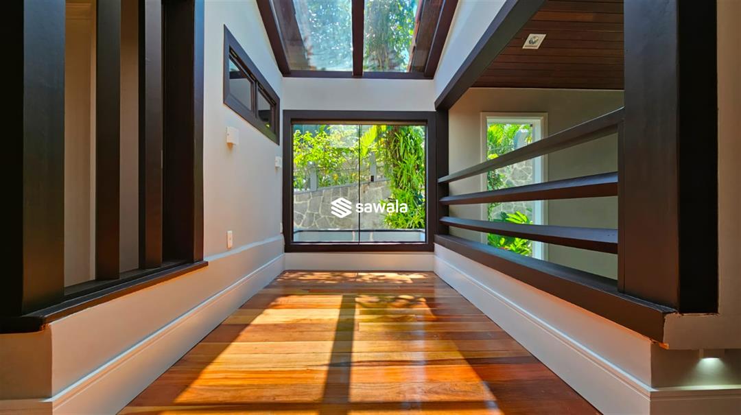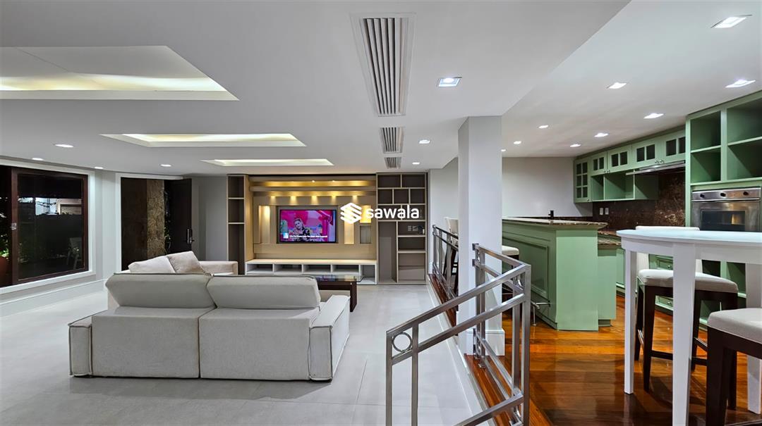 No nível superior, 4 suítes com closet, todas iluminadas, sendo a master muito ampla, rouparia, lavabo, escritório espaçoso, copa de apoio e solarium para convívio