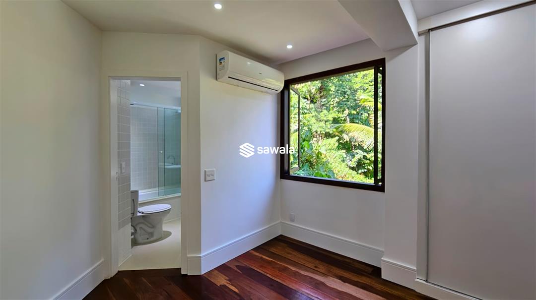 Um espetáculo de residência, amplamente retrofitada e pronta para morar, totalmente integrada ao verde, com muita privacidade, no condomínio Jardim do Itanhangá, na parte baixa