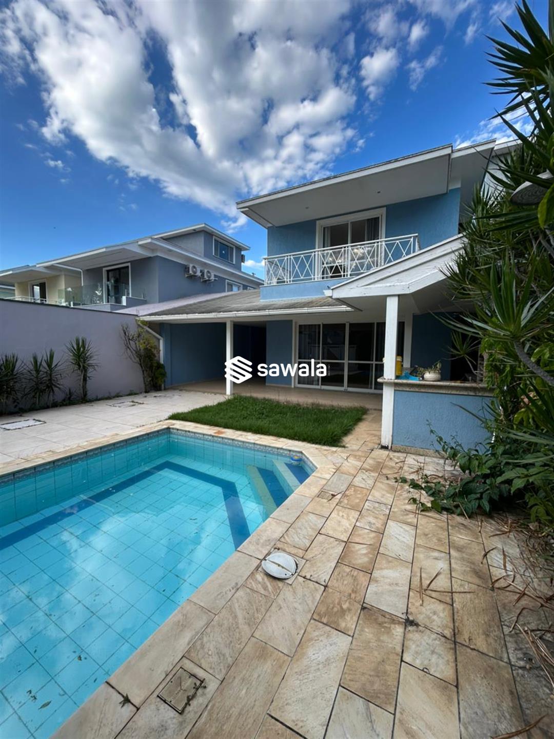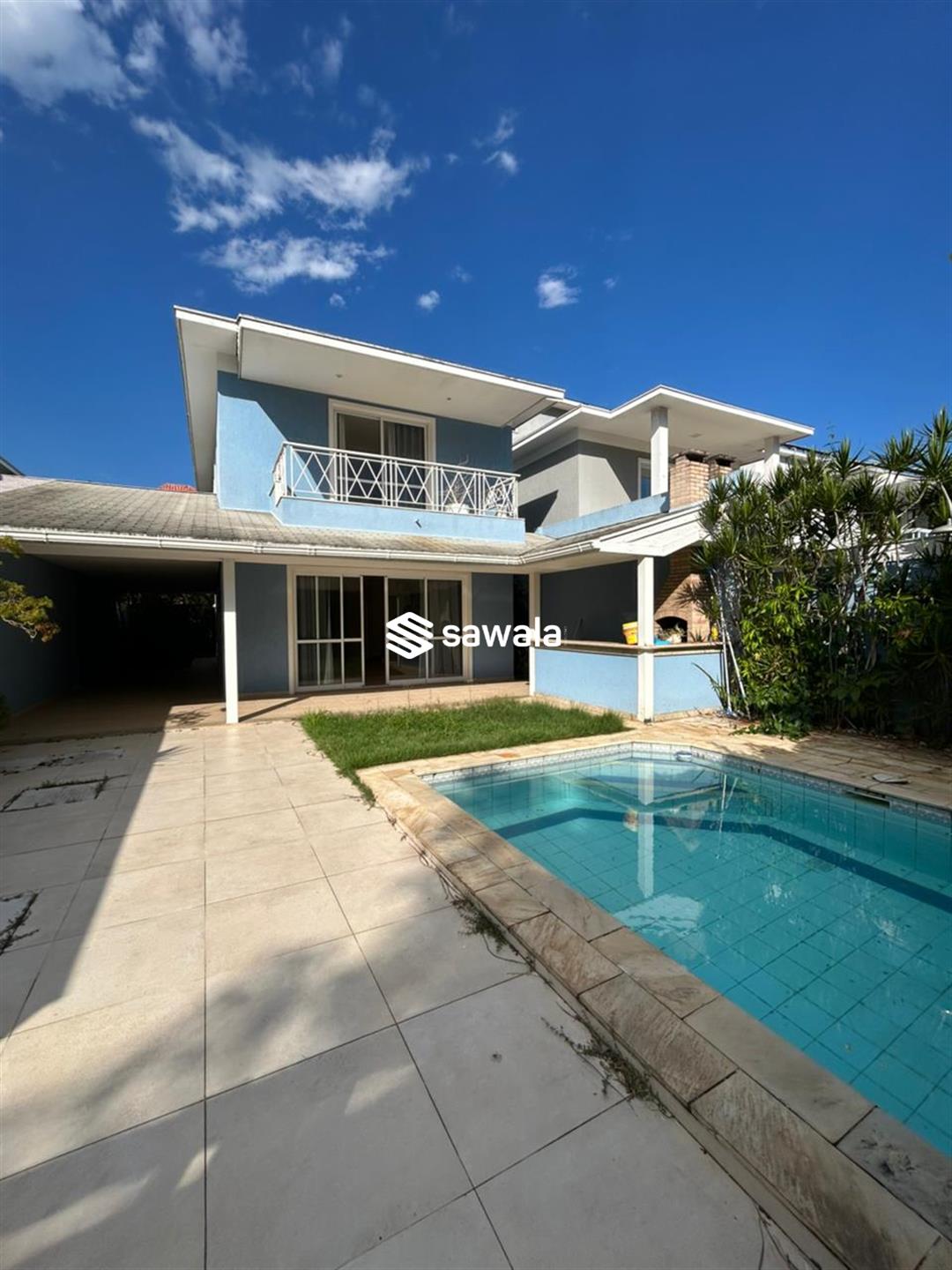 Composto por piscina, varanda gourmet com churrasqueira, gramado e jardim