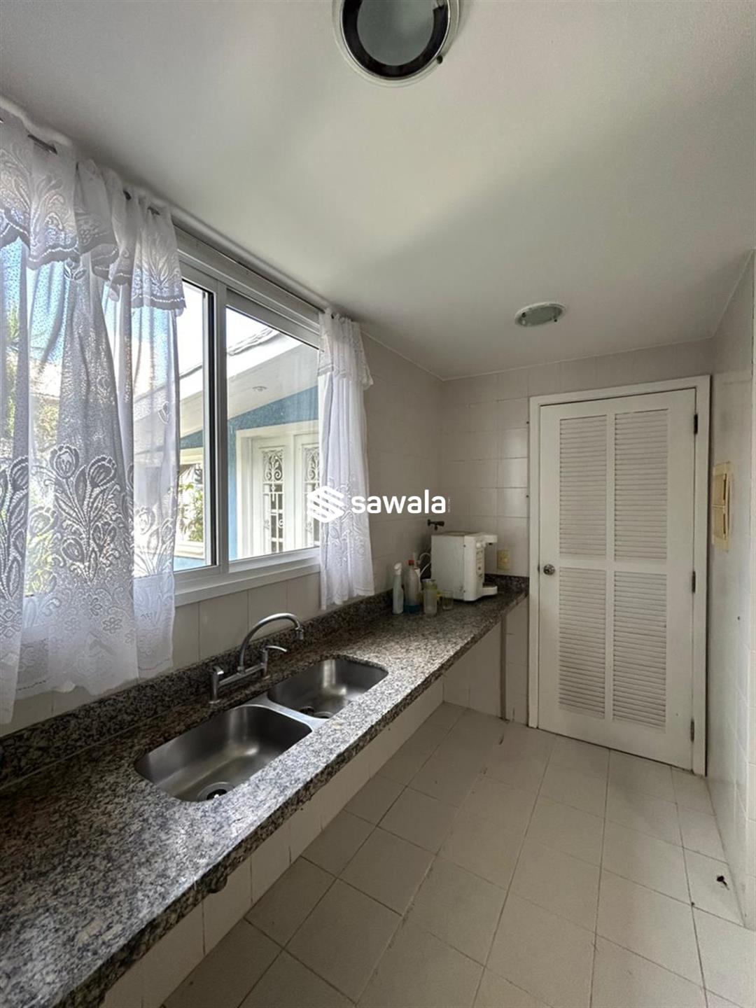 Composto por sala em três ambientes com bar, lavabo, cozinha, área de serviço com lavanderia, dependência completa para funcionários e área coberta e depósito.