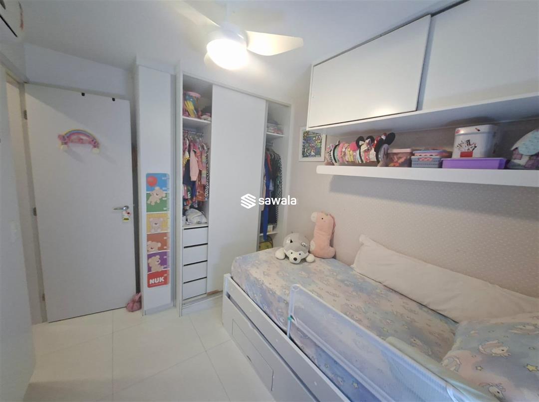 integrando a varanda. Uma vaga na escritura. Lazer e Segurança: Condomínio com lazer completo, incluindo piscinas, uma exclusiva para natação, academia bem aparelhada com professor, quadra poliesportiva, salão de festas, salão de jogos, sauna com hidromassagem, espaço gourmet, bicicletário e minimercado